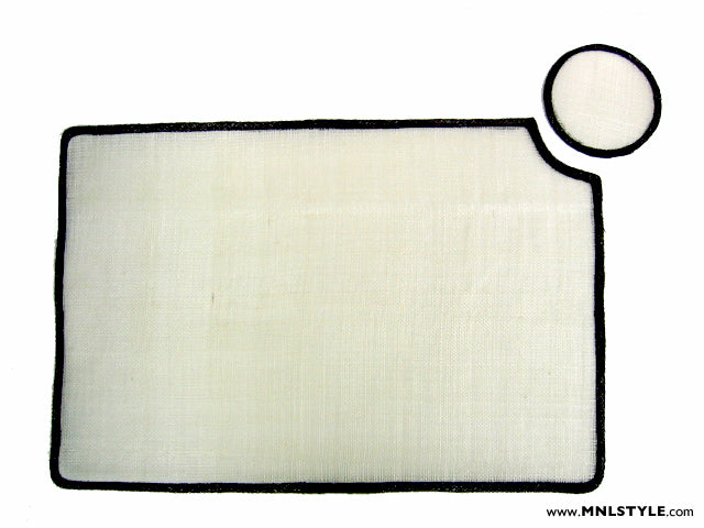 In natural with chocolate brown trim [18” x 12”]. Sinamay fiber.