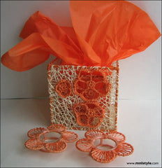 Use these boxes to organize the little pieces in your home (aka – clutter). The well designed box will hide away the mess. Or use it as an alternative to wrapping paper and let it carry a present. Nesting set of 2. Twine in white with orange frame and lilies or white with yellow frame and lilies [4.7” x 4.7” x 4.7” and 5.9” x 5.9” x 5.9”].