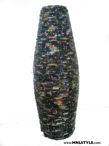 The recycled magazine jar is made out of magazine pages tightly wound by hand to create little “beads.” The jar could hold water but we think it’s just as impressive on its own.