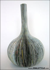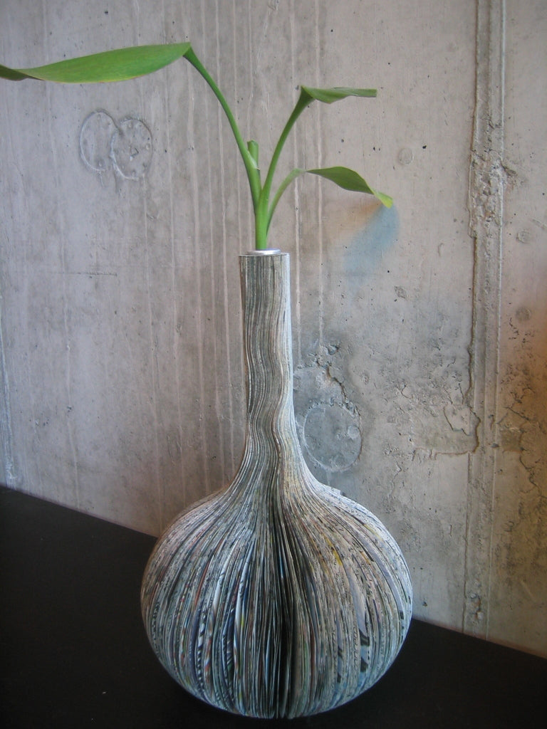 Don’t let the curves fool you. There’s more to this vase than meets the eye. It’s crafted out of recycled newspaper making it more than just a vase…it reduces waste. A metal insert on the top allows you to display flowers or perhaps one bamboo stalk. Very cool. [11.75” x 6”].