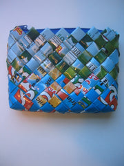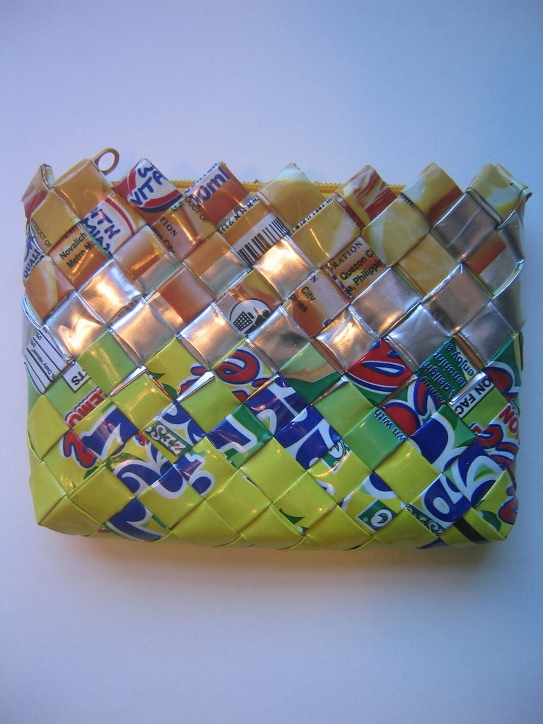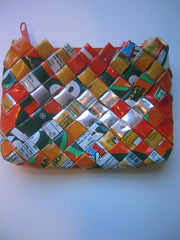 What started as an effort to clean up the streets in Pasig, Philippines resulted in a great looking product that is fun, functional, and environmentally responsible. Used and sanitized juice bags have been woven to create this coin purse. Not only have millions of juice bags been kept off the streets and out of landfills, 500 jobs for women have been created. Visit The Kilus Foundation to learn more.